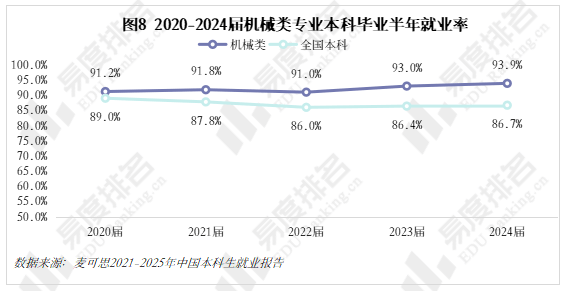 机械类专业结业五年就业对劲度差强人意,近年,院校占比尚未回到2021年程度。