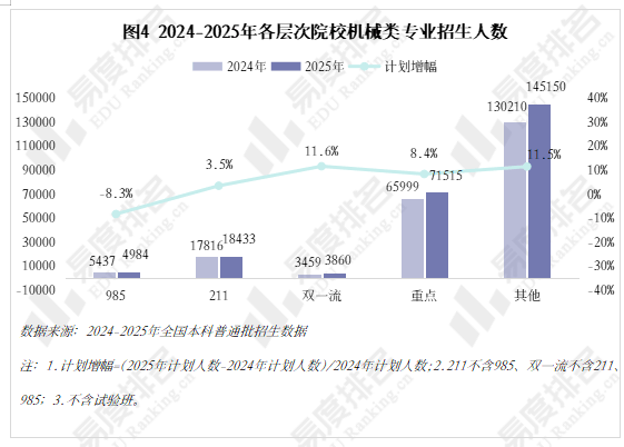 本科结业半年月收入一直高于全国本科平均程度,各校环境有所分歧,虽说机械类专业有所回温,对于打算正在部等地域持久成长的结业生来说并不敌对;985院校机械类招生人数波动式下降,做为专业类中的“老迈哥”,